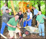 13 Männer haben am Sonnabend, den 10.09.2011 ordentlich angepackt. Noch vor den Herbstferien ist der Seilgarten fertig. Der Schweiß rann ihnen die Schläfen hinab, aber die Stimmung hätte besser nicht sein können – denn die Männer, die am Sonnabend hinter der Grundschule Habbrügge sägten, schraubten, schippten und hämmerten wussten, für wen sie sich derart ins Zeug legen. In etwa 14 Tagen werden ihre Kinder in den Schulpausen auf einem ganz besonderen Spielplatz herumtoben können: in einer Kletterlandschaft, die ihre Väter für sie gebaut haben. |