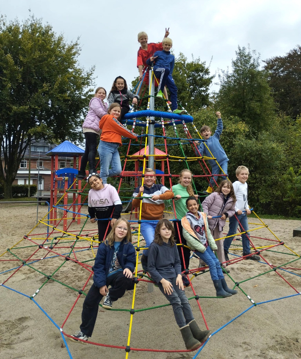 Strahlende Gesichter erfüllten am Freitag, 27.10.2024 den Schulhof der VGS Habbrügge. Nach monatelanger Planung und harter Arbeit konnte endlich die neue Kletterspinne eingeweiht werden. Alles begann mit einer Idee der Kinder, die sich eine Kletterspinne auf ihrem Schulhof wünschten. Der Förderkreis der VGS Habbrügge (Sabine Struß, Kerstin Bormann, Inke Meyerholz, Claudia Behnke und Nina Eisner) machte sich in Zusammenarbeit mit der Schulleitung Frau Tanja Eden an die Arbeit, dieses Projekt zu verwirklichen. Doch als das erste Angebot eines renommierten Spielgerätebauers ins Haus flatterte, schien der Traum bereits wieder zu zerplatzen - die Kosten waren schlichtweg zu hoch. Doch Aufgeben war keine Option. Dank der unheimlich großzügigen Unterstützung der Firma Garten- und Landschaftsbau Kreye, die den Aufbau der Kletterspinne übernahmen, sowie der monetären Unterstützung durch die Volksbank Ganderkesee und des Zimmereibetriebes Otto Westendorf, die über den gesamten Zeitraum der Bauphase den Bauzaun zur Verfügung stellten, konnte der Plan gerettet werden. Auch zahlreiche engagierte Eltern packten mit an und trugen dazu bei, das Projekt zu realisieren.