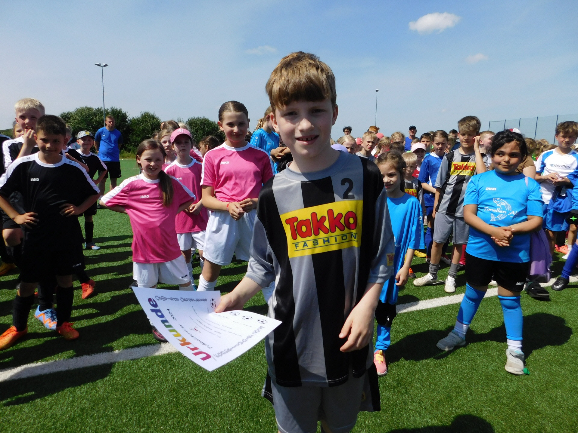 Nach nur einem Tor (auch noch ins eigene) haben wir dieses Jahr zwei geschossen und die meisten Spiele lange Zeit ausgeglichen halten können. Unser Team war im Vergleich zum letzten Jahr zwar auf einigen Positionen verändert, aber einige Kinder waren nun schon zum zweiten Mal dabei und könnten dieses Turnier mit etwas Glück sogar viermal spielen (bei Nichtversetzung sogar öfter ;o)