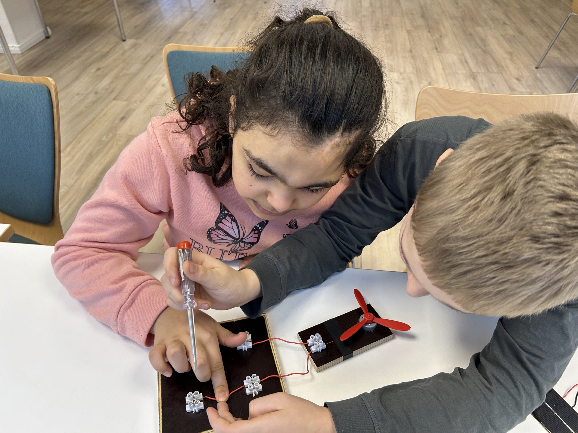 Die Schülerinnen und Schüler der Klasse 3 und 4 waren im RUZ und haben viel zum Thema "Strom aus Sonnenlicht" gelernt und experimentiert.