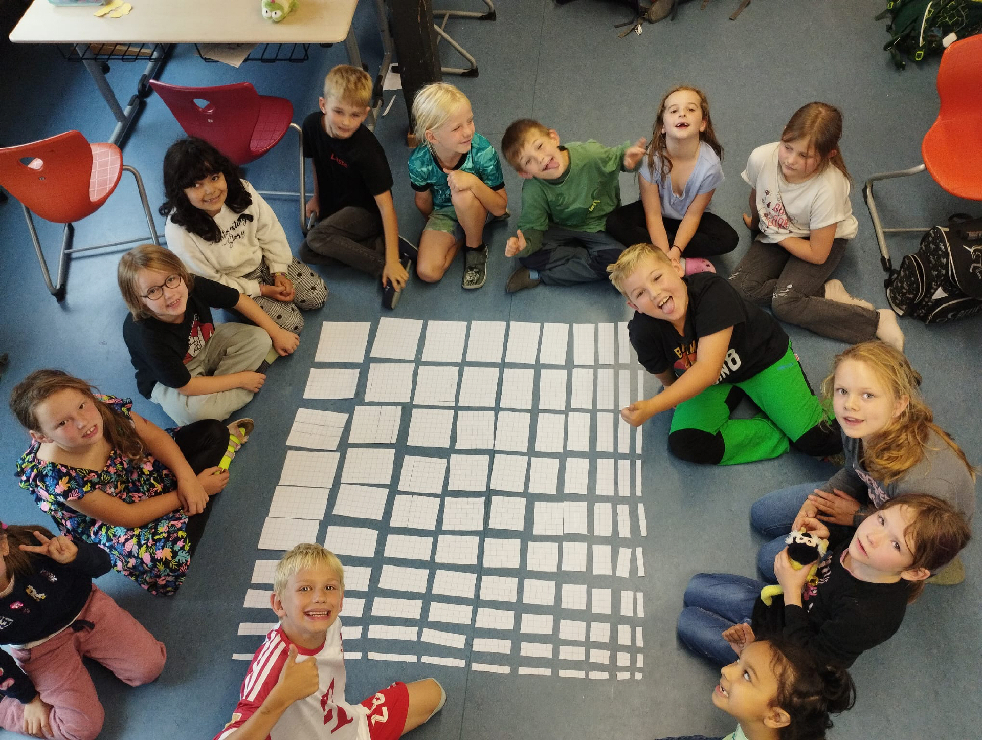 Die Klasse 2 und 3 hat die Quadratzahlen erforscht und dazu ein Schaubild gestaltet.